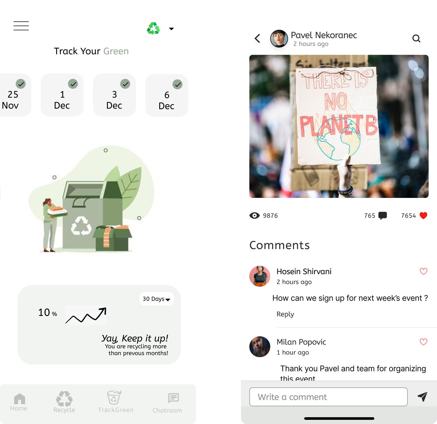 This add-on feature learns from social media competition. Among the users, the users are rewarded points upon recycling and participating in community environmental events. After that, there would be a weekly / monthly leaderboard to demonstrate the points the user collects compared to their friends.